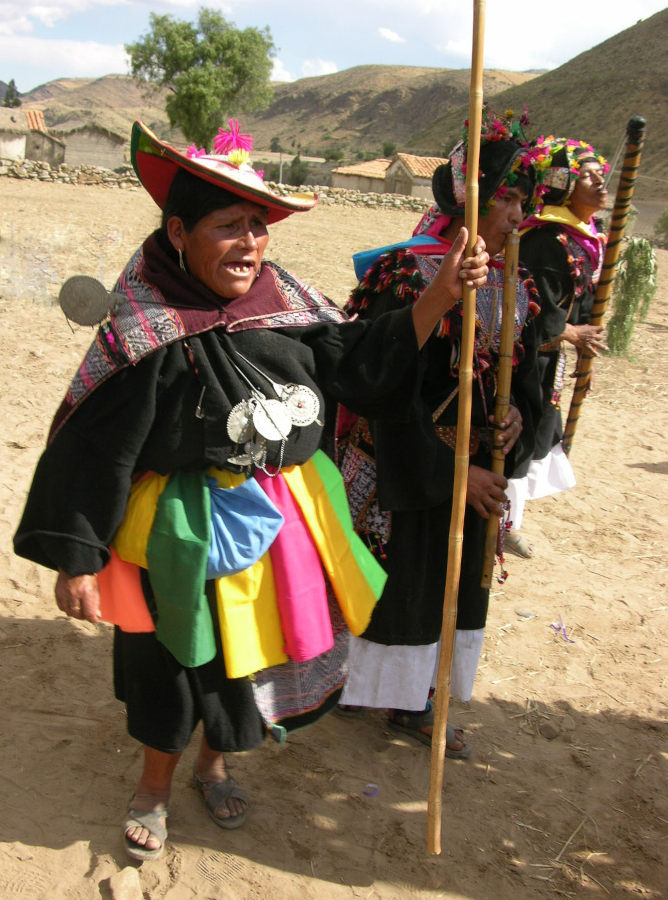 El rol de las mujeres en la danza se caracteriza por la interpretación vocal, además de la coreográfica; participan cuatro a seis mujeres, entre las cuales suele ser mayor el número de mujeres adultas que jóvenes. En el desarrollo de la coreografía, las mujeres llevan en la mano banderas blancas sujetadas a palos altos (de unos 4 metros de alto); dando golpes con estos en el suelo y con mucho garbo, marcan el ritmo de su danza y el compás de los wayñu. Transcurridos unos quince minutos de música y danza, empieza el canto; una de las mujeres mayores comienza a cantar y, haciendo parte de la interpretación, ella junto a las otras mujeres, emiten gritos en son de proclama del Pujllay. Y, en medio de la danza, lanzan al aire confites. El paso rítmico de las mujeres al danzar y la intensidad de su canto, se complementa con la coreografía que despliegan los varones.
