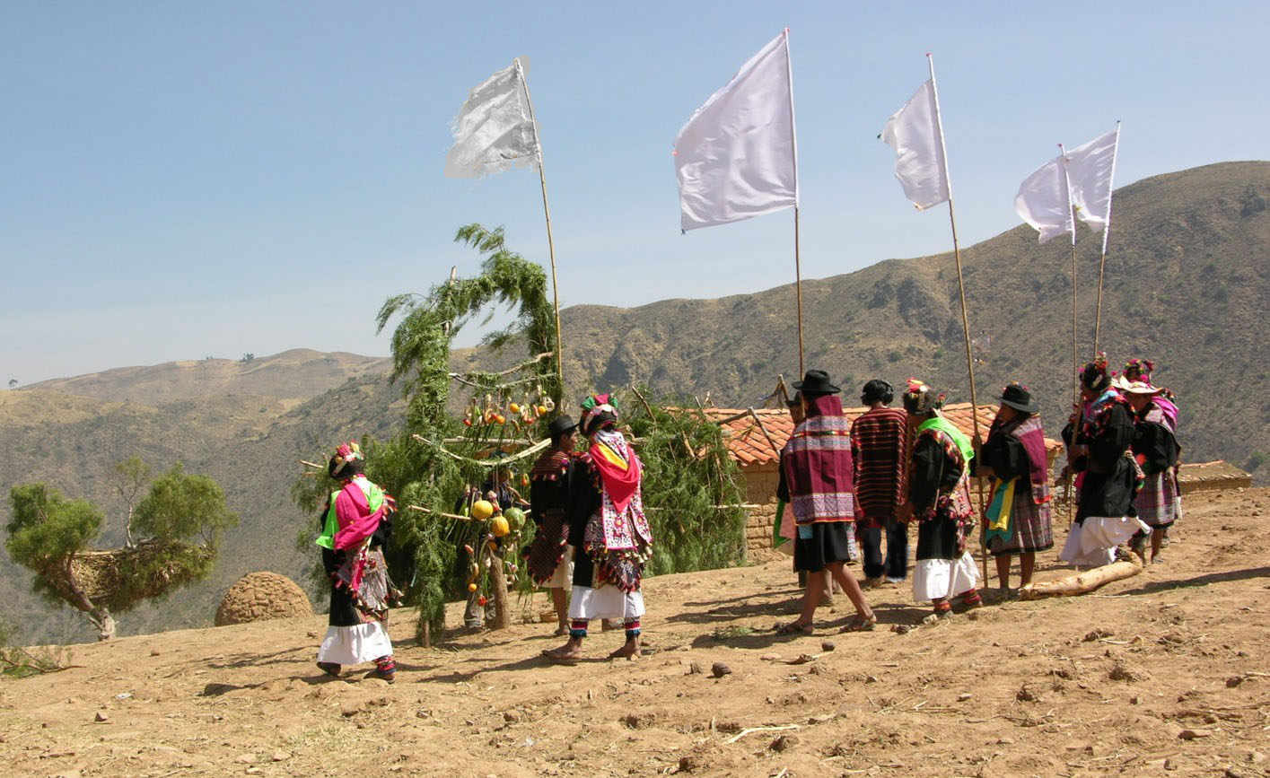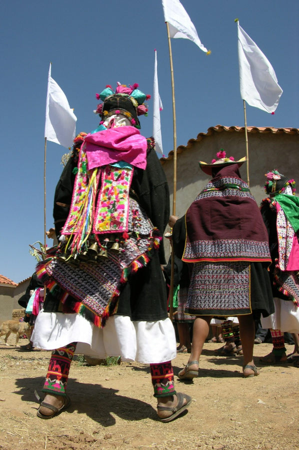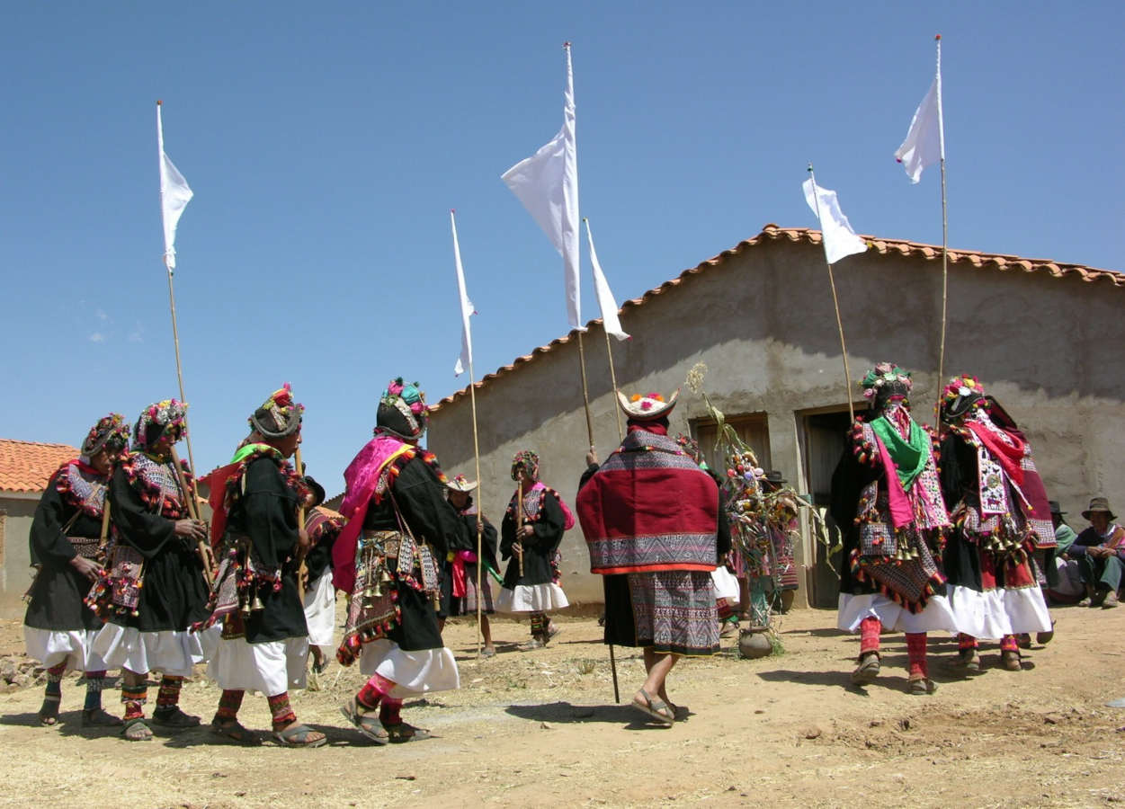 El músico guía conduce a la tropa en fila hasta donde se halla la Pukara y, luego, inicia la danza con un movimiento en círculo (efectuado en sentido contrario a las manecillas del reloj). Según el criterio del guía, cada tanto los danzantes hombres y mujeres giran cambiando de dirección al son de los cantos. La coreografía que efectúan los varones es distinta a la que se ve en la región de Tarabuco, pues dado que las ojotas que calzan no llevan espuelas, el énfasis es puesto en la flexión de las rodillas y no tanto así en los pies. Al danzar, imprimen otra mecánica de movimientos en el lenguaje corporal. Esta consiste en marcar los pasos con la punta de los pies, luego, flexionar las rodillas e inclinar el torso levemente hacia adelante. El efecto que produce esa secuencia de movimientos del cuerpo, es el tintineo rítmico de las campanillas que enriquecen con su sonido el variado espectro de la música del Pujllay.